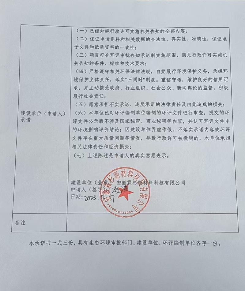 附件2:安徽省建设项目环境影响评价文件报批承诺书